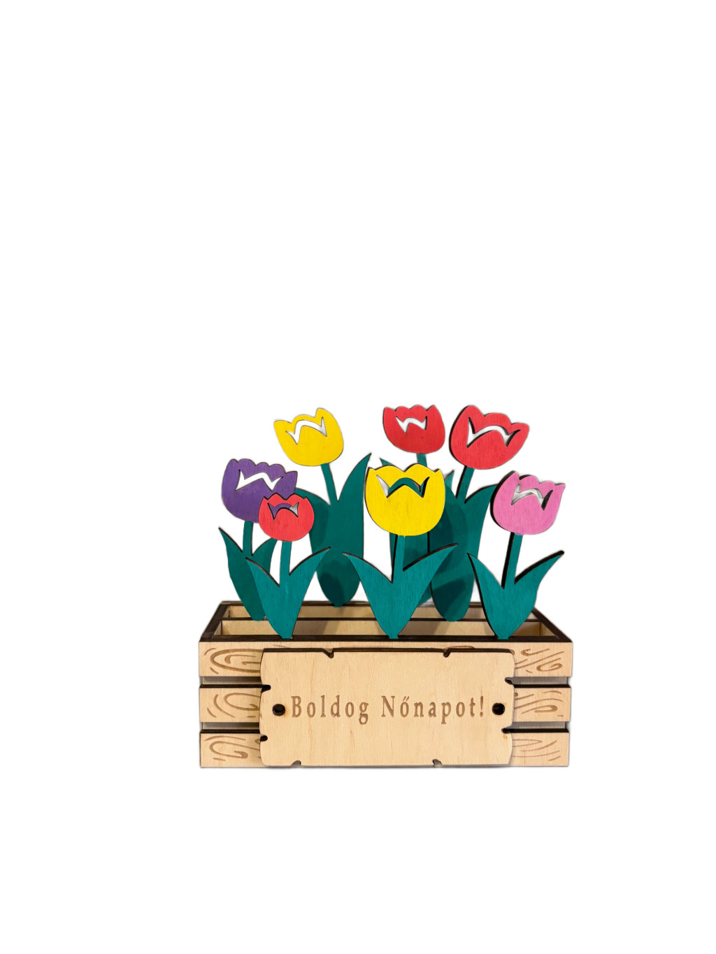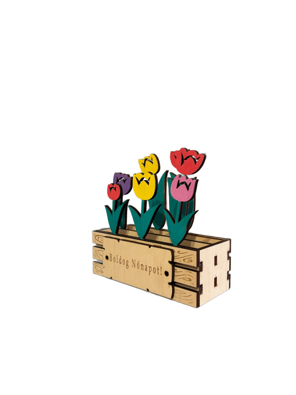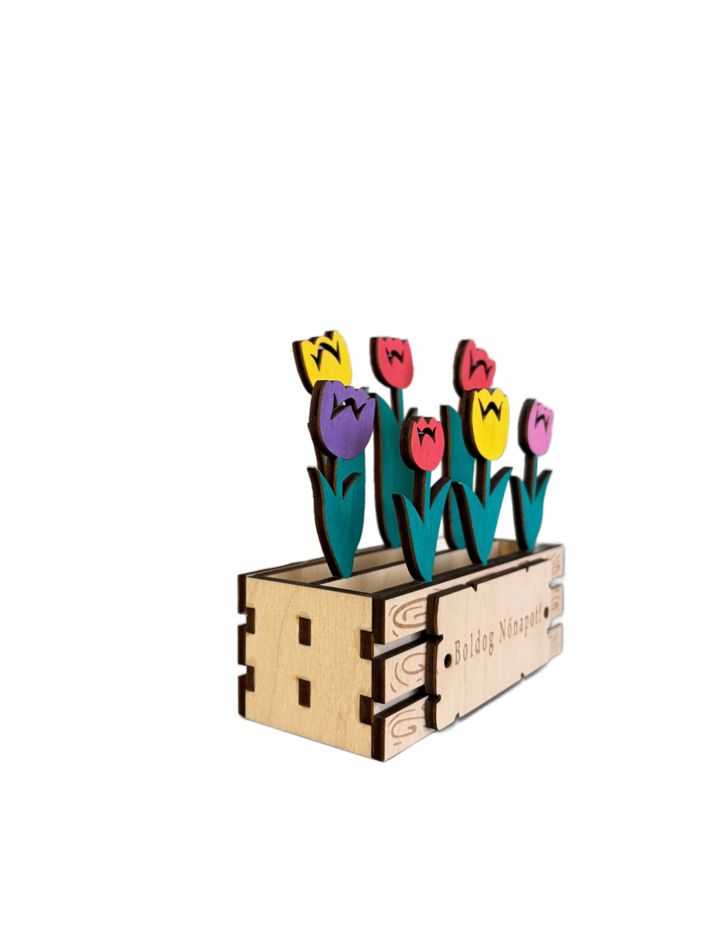 Ez a színes, lézervágott fa tulipáncsokor nem hervad el - örök emlékként díszíti az otthont.